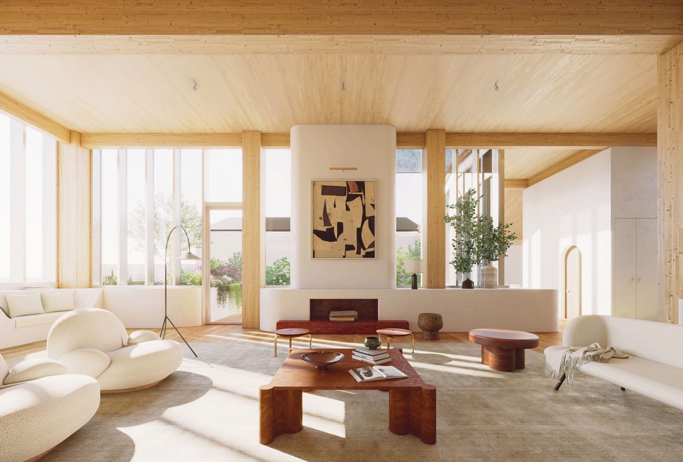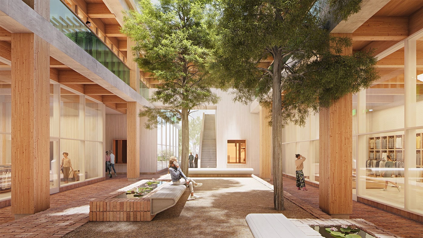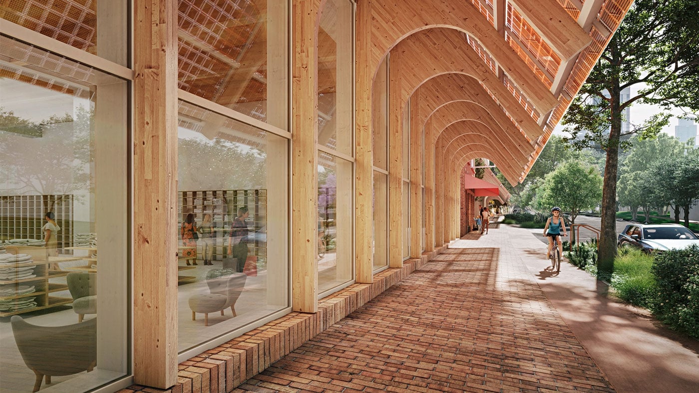 The Sixth&Blanco project in Austin, Texas, is a mixed-use development occupying a city block on West Sixth Street, near downtown and the Colorado River. Embracing the neighborhood’s characteristics, the design integrates greenery, passive cooling, an active storefront, and a natural material palette. The continuous wooden structure creates a village with shops, restaurants, retail, event spaces, a hotel, and residences. The building steps back, maintaining a human scale and comfort. Hotel rooms provide an intimate indoor/outdoor experience, while upper-level residences offer true indoor/outdoor living. The project prioritizes sustainability with passive cooling, rainwater collection, solar energy harvesting, and mass timber and concrete elements.
