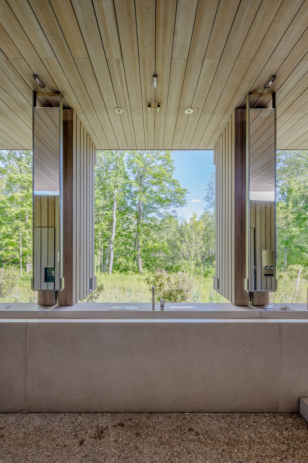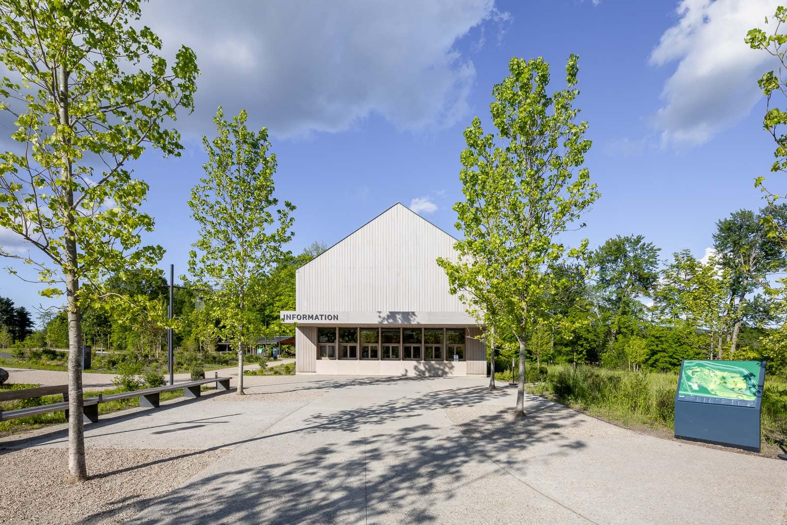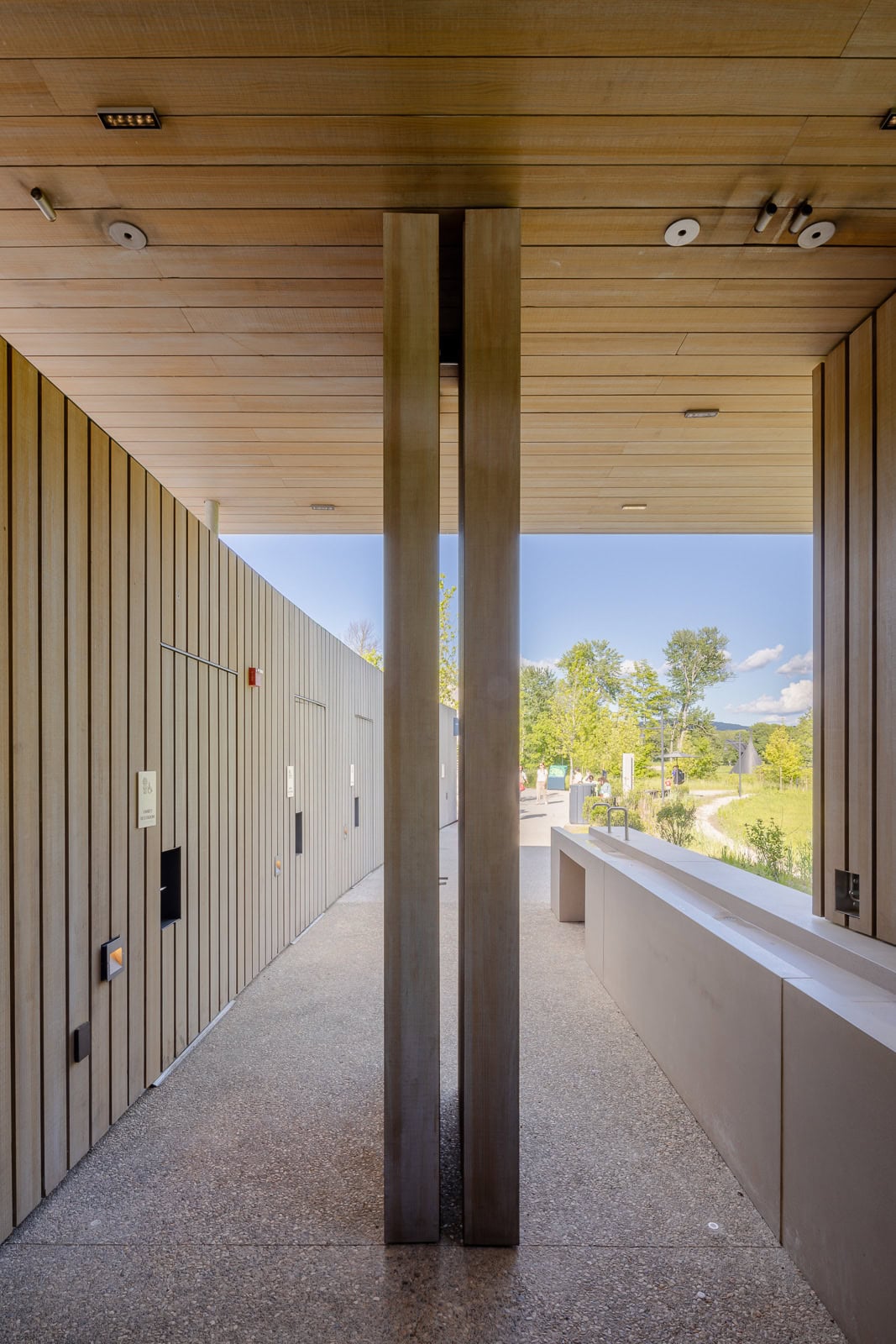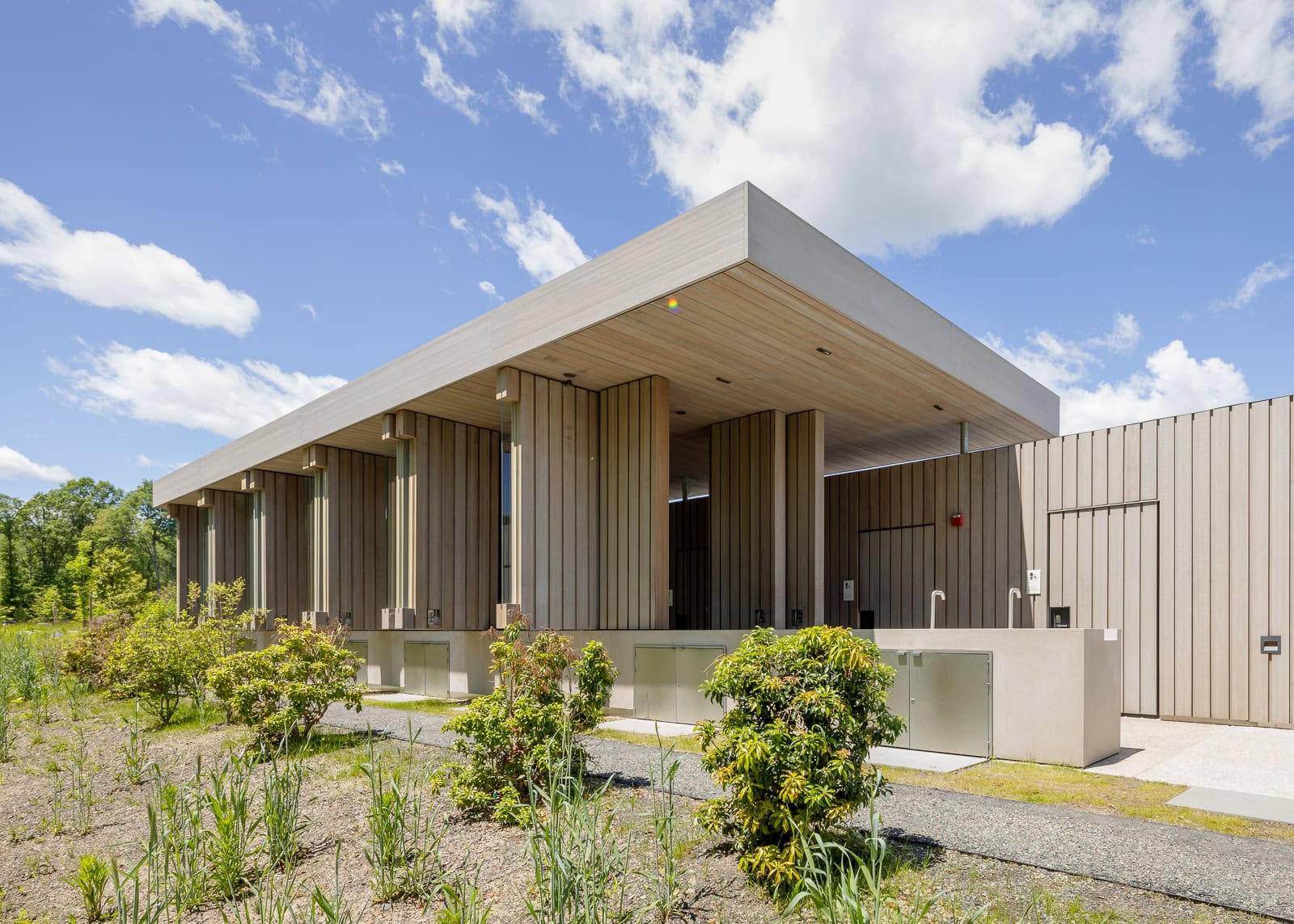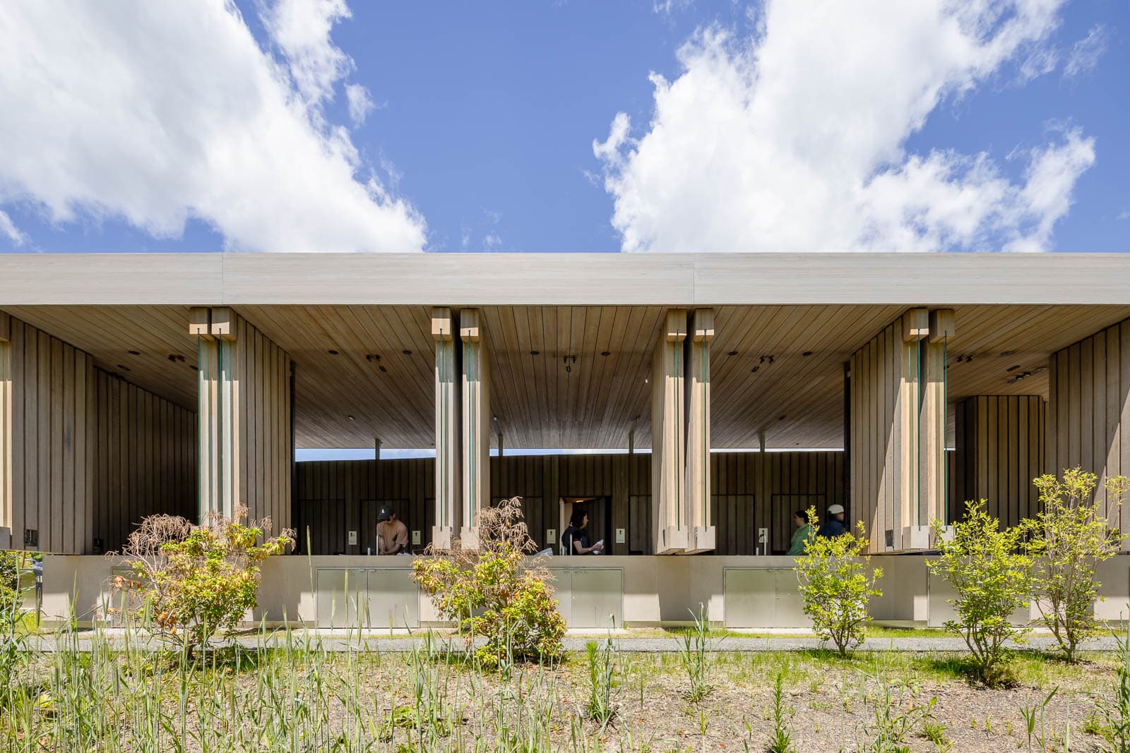 Storm King is a 500-acre art and cultural center located in the Hudson Valley of New York with large-scale sculpture and site-specific programming. The center’s expansion consists of supporting buildings and services that will enhance and facilitate the overall visitor experience while blending into the surrounding landscape. Front consulted on the design of all above grade vertical and horizontal envelope systems for the two Welcome pavilions and the Conservation, Fabrication, and Maintenance (CFM) building from the middle of the construction documents phase through construction administration. Front’s scope for the two Welcome pavilions includes the rainscreen façade system with timber cladding, timber windows, standing seam roof, TPO roof, canopy with timber fascia, GFRC cladding, skylights, custom timber shutters, and custom timber overclad doors.